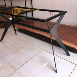 Trên thị trường hiện nay, các sản phẩm chân bàn ăn bằng sắt hiện nay đang rất thịnh hành. Nguyên Mộc Decor thiết kế và sản xuất mẫu chân bàn ăn xương cá, kiểu cách đơn giản mà hiện đại. Chân được làm từ sắt lá 8mm, kích thước: đế khung dài 1400mm, rộng 700mm, mặt khung hộp 1100mm, rộng 510mm