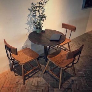 Bạn có thể kết hợp với mặt bàn gỗ vuông hoặc tròn với kích thước từ 60-80cm, dày từ 2-5cm, mặt bàn đá từ 60-80cm để làm bàn cafe, bàn ăn nhà hàng, khách sạn, quán ăn nhanh…